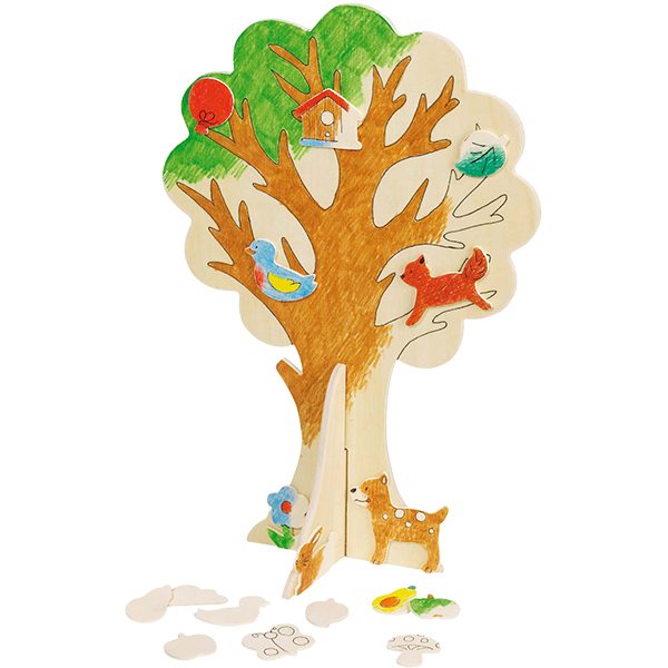 Een blank houten boom voor op de seizoenstafel of bij de treinbaan. Of om gewoon lekker mee te knutselen. Het blanke hout kan naar eigen ontwerp geverfd of met stift gekleurd worden.