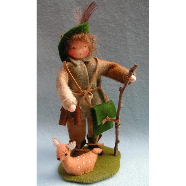 Deze prachtige boswachter staat op een tafereeltje met een hert.