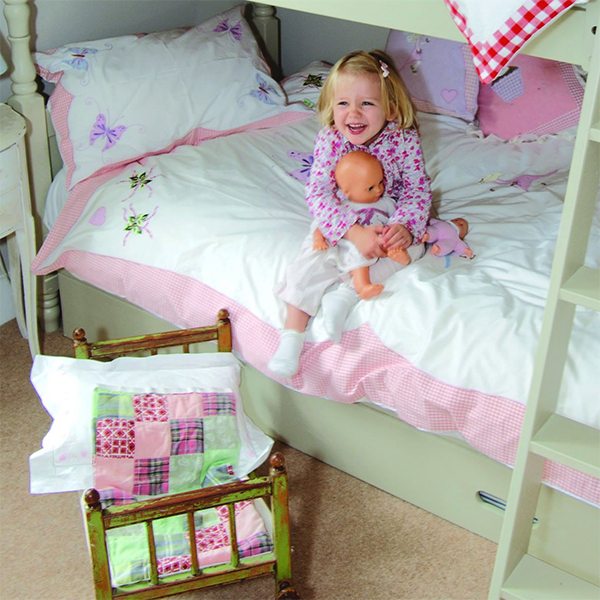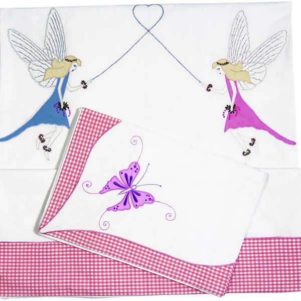 Prachtige dekbedhoes met applicaties van Elfjes en vlinders. Afgewerkt met een roze rand. 100% katoen.