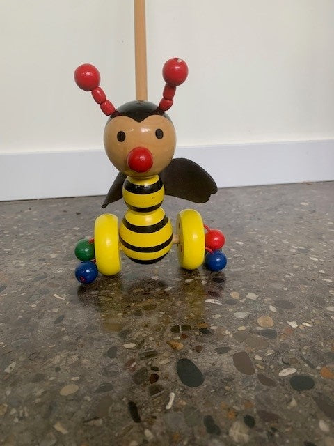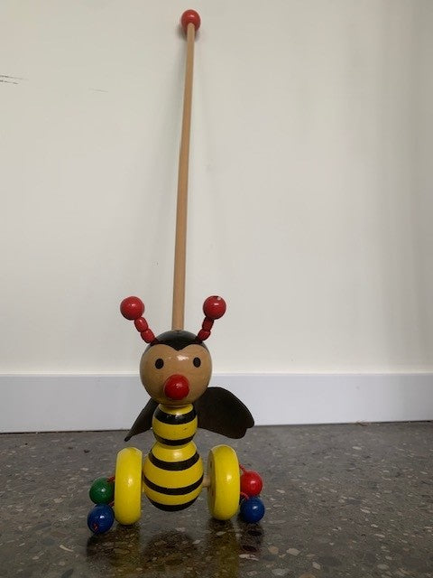 Met de bij op stap, duw de duwstok maar vooruit. Een heerlijke uitdaging voor de beginnende stappers.