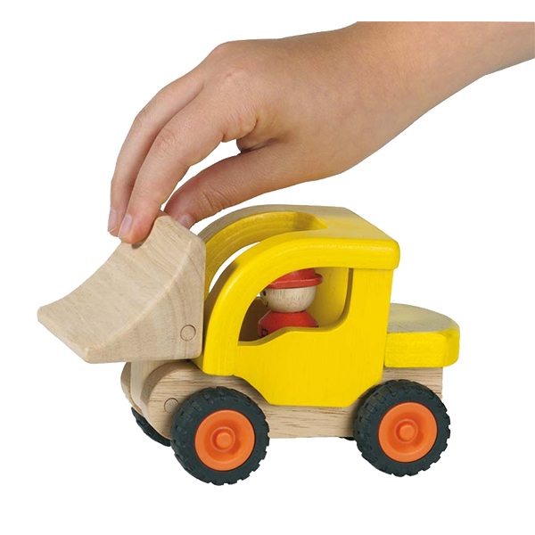Een mooie stevige gele shovel. Rijdt op rubber wielen en dus veilig voor houten vloeren.