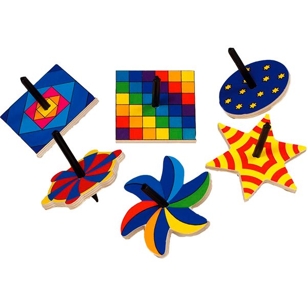 Tollen in zes verschillende vormen en kleuren. Maar als ze gaan draaien zien ze er weer heel anders uit.