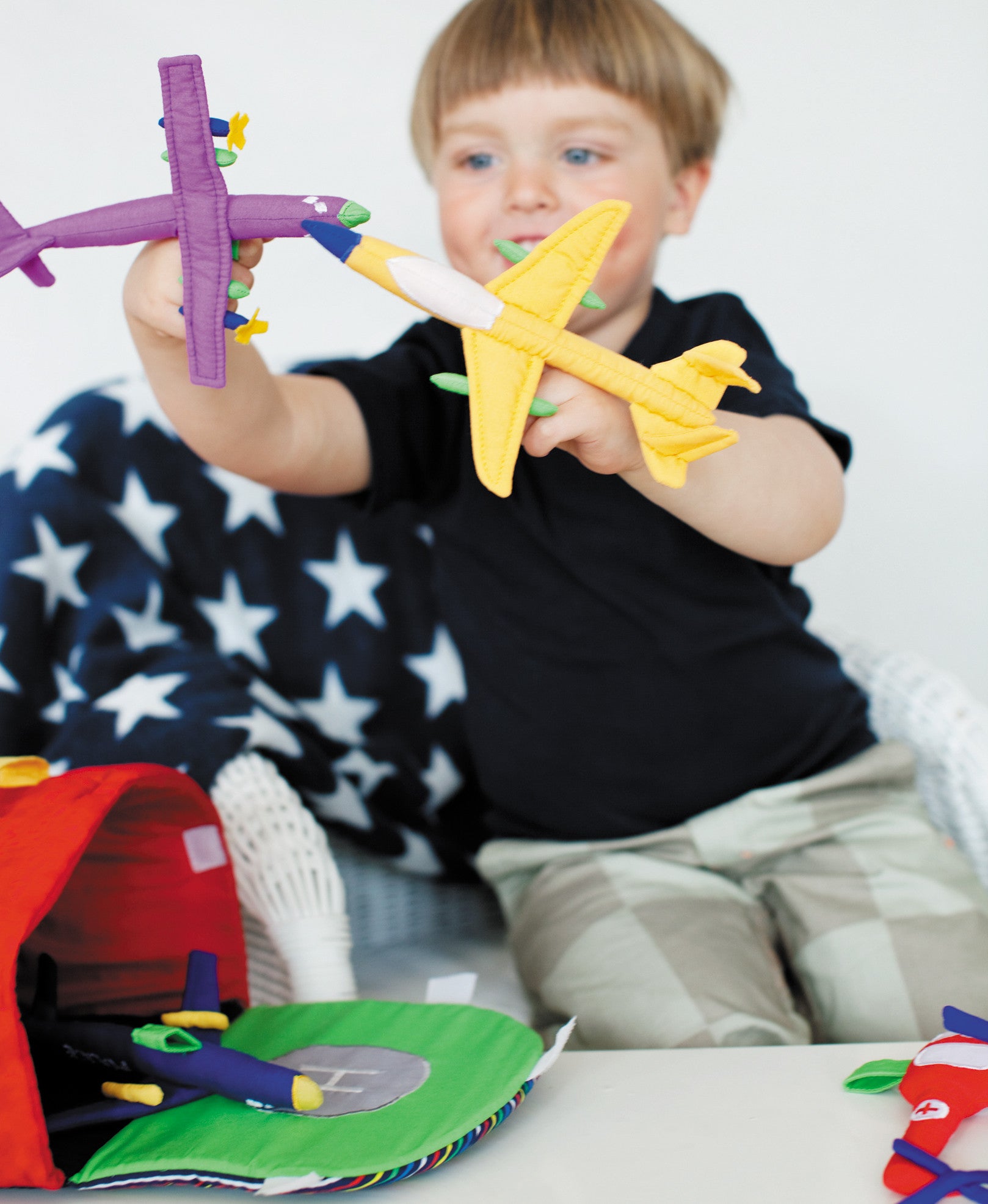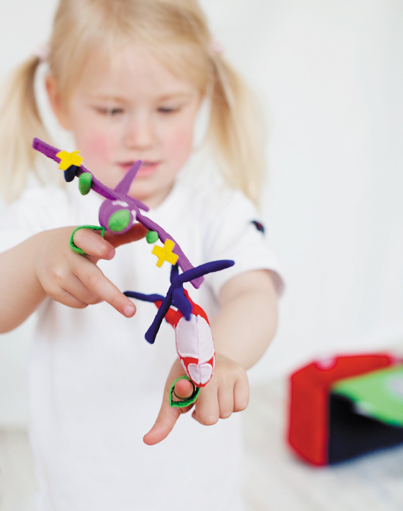 Een hangar als speeltas die als je opent een heus helikopter platform geeft. Er zitten 4 vliegtuigen en een helikopter bij. Onder elk vliegtuig zit een klein 'oogje' waar je een vinger in kan doen om 'echt' te vliegen. Alleen geschikt voor echte vliegeniers. Veel plezier!
