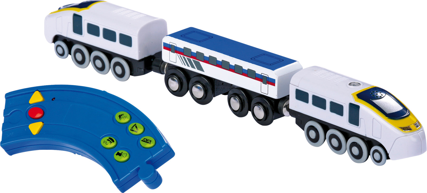 Deze hogesnelheidstrein kan in twee richtingen rijden en is te bedienen met een afstandbediening op batterijen.