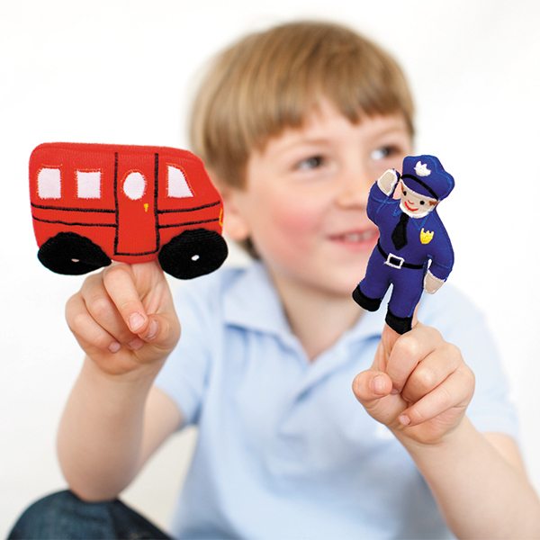 Een prachtige tas met daarin 6 verschillende aanwijzingen voor een liedje. Het kind steekt zijn hand in de tas en grabbelt een aanwijzing en probeer er een liedje bij te bedenken. Ieder object kan tevens als vingerpopje gebruikt worden.