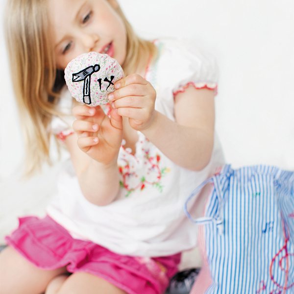 Afmeting: zak 25 x 25 cm, figuren +/_ 10 x 8 cm