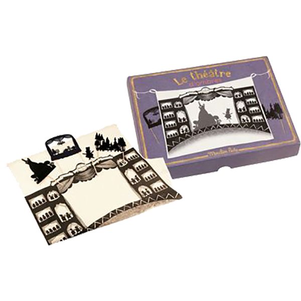 Hang het Theater op aan de lussen zet een lamp achter het doek en spelen maar. Een stapje verder dan de poppenkast en zeer geschikt voor kinderen wat oudere kinderen om zelf een opvoering te maken. En altijd leuk voor de kleinste om te komen kijken.