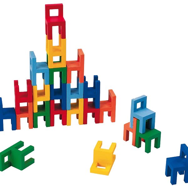 Stapel 24 gekleurde stoelen maar laat ze niet vallen. Een vaste hand is geen overbodige luxe en een beetje inzicht komt goed van pas. De gekleurde ladders moeten gestapeld worden maar hoe? Daar is een vaste hand voor nodig! Maak een hoge toren om de beurt maar laat hem niet om vallen...