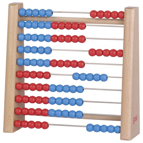 Dit houten telraam met 100 kralen in twee duidelijk, te onderscheiden kleuren, te gebruiken als hulpmiddel bij tellen en/of rekenen.