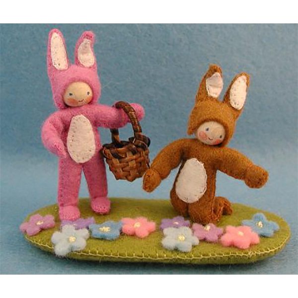 Met dit poppenpakket zijn deze paashaasje te maken.